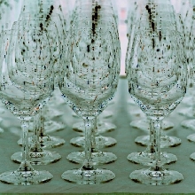 the strict lines of the glasses