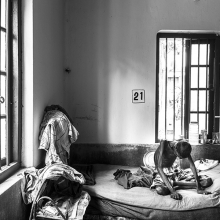 The images of the series Faces of Tuberculosis show people at an advanced stage of their multiresistant tubercolosis disease. Because of the treatment, that often lasts for several years and has extreme side effects, the Howrah Tuberculosis Hospital in a poor district of Kalkutta becomes their new home. Due to their physical and mental state, they turn into prisoners of the hospital rooms and their own bodies.