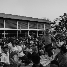 During the ceremony, Buddhist songs and prayers can be heard. The leaps and dashes are repeated incessantly for several hours in front of the impassive gaze of the tattoo masters, unflappable on their stage and seated beneath a vast Buddha.