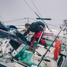 The Mini Transat is one of the most extreme sailing races. Every two years, since 1977, solo sailors cross the Atlantic Ocean on boats that are 6,5 meters (21’ 4”) long only. They spend no less than three weeks alone in the sea to sail 4000 nautical miles in two legs: 1300 from Douarnenez (Brittany, France) to Lanzarote (Canary Islands) and from there other 2700 to Point-à-Pitre (Guadeloupe). Fiftysix sailors reached the finish line in the Caribbean in the 2015 edition. Federico Cuciuc was the last one to arrive, with a time of 34 days and 13 hours.
