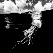 Black and white half and half images of the frontier between air and water. Humans are land animals and we are well adapted to live above water. But when it comes to explore what lies beneath the waves, we need special equipment to adjust our senses, especially our eyes. A whole new world is revealed to us, bringing us closer with a greater appreciation to our connection to all life on this planet. These series aims to portrait these frontier that is just until very recently being explored by us.