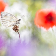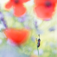 Macros with a monochrome background often seem to me as if the insects had been taken "out of nature". In this series I consciously photograph the insects in the meadows – including the thriving environment and natural structures. I want to integrate the insects into nature. The bokeh is not created by Photoshop. Only minor post processing.