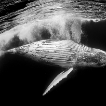 This series was created having spent 7 hours each day at sea from Vava'u, over 8 days finding and interacting with the humpback whales. Showcasing the whales against a black backdrop, I hope to be able to present the sheer elegance and magnificence of these gentle giants.