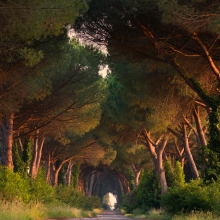 The paths of a Tuscan pine forest, wonderful in Pisa