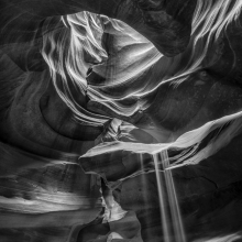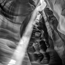 I spent weeks travelling the American Southwest and became fascinated with the sandstone slot canyons that the region is known for. Although rich in colour, I chose to display these images in black and white, to highlight the abstract patterns and textures in the stone.