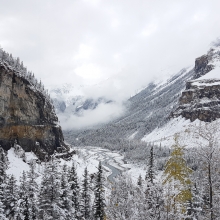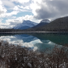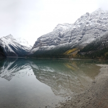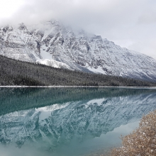 Taken with a mobile phone while hiking the Berg Lake Trail, in the Mt Robson National Park, Canada. Woke up the next day after camping, to everything covered in snow, with contrast of the liquid river running through the landscape. The river being the heart of the mountains, hence, the title Liquid Hearts. This also provided a great landscape for reflections. - (Quality of photos were great before resizing).