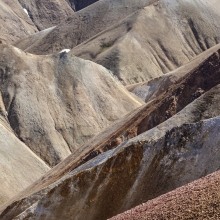 La interpretación de este tipo de paisaje siempre ha sido motivo de gran interés para mí, en especial el de Landmannalaugar como reto personal por su difícil acceso y variabilidad climatológica que condicionan el resultado, así como por el acercamiento con la fragmentación de su riqueza cromática y sus expresivas texturas erosionadas, ofreciéndonos un recorrido por la piel de estas mágicas montañas de colores.