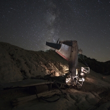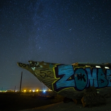 Night photography of abandoned vehicles of the sea, land and sky. In this series, I have 2 night pictures of an abandoned boat, 2 pictures of abandoned cars, and 2 pictures of abandoned planes. I like to take photos of less than ordinary things and make them beautiful, and into extraordinary subject matter.
