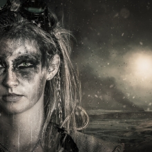 The model was shot in the studio and the background images come from of my visits to Iceland as I felt these provided, with some desaturation, the best backdrops to enhance the desolation of the entire series.