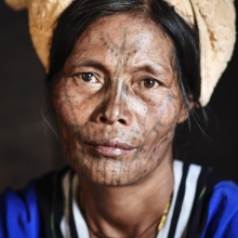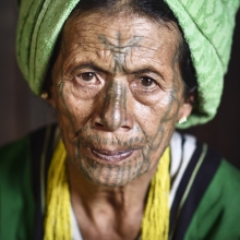 No clear answer why their faces were tattooed in the past when they were young. Some said they did to prevent a King to get them into a palace. Some explained the tattoo is the mark of their village tribe on Western mountain in Myanmar. The legend goes on, young girls now do not want to be tattooed, and thus I wanted to capture this old charm before it vanishes through time.