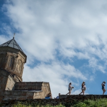 In Georgia today is beginning to undergo a "gentifrication" process due to the massive arrival of tourism in certain remote areas. The area of the Kazhbegi is one of these: the natural places for most of the year are filled with tourists who crowd ancient monasteries and natural areas. With these photographs I have tried to make a portrait of this mass phenomenon with a sometimes grotesque face. To represent this, I chose color photography. This photos is part of the long term project "The touristic invasion" about the effect of massive tourism on some environement
