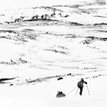 I made this serie while crossing Iceland from north to south. I did it in April 2008 and April 2009. Is was not possible to cross in 2008 due to the bad weather so I walked the end of the trip the following year. I want to represent whith this serie of pictures how small is the man in this giant nature when we travel on foot. Fog, wind and snow... Iceland!