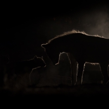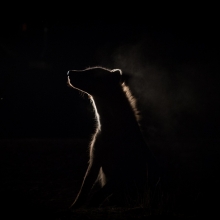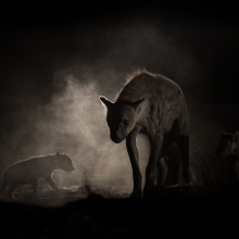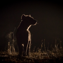At night at the hyena den. We just came back from dinner and stopped at the hyena den. Another car approached and I used the light of their car and torch to take this images. Location: Khwai Community Area, Okavango Delta, Botswana